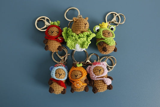 Crochet Capybara with hat Keychain/Vegetable/Strawberry/Frog/Orange/Fishman/Pink Pig/ Pink Bear/Pacha/Pikachu/Black Cat//3 Eyes MonsterMelody/Chicken