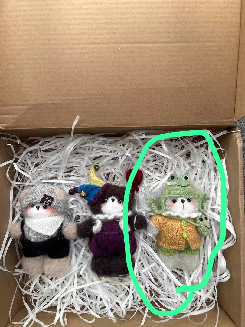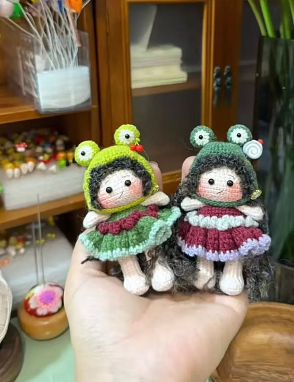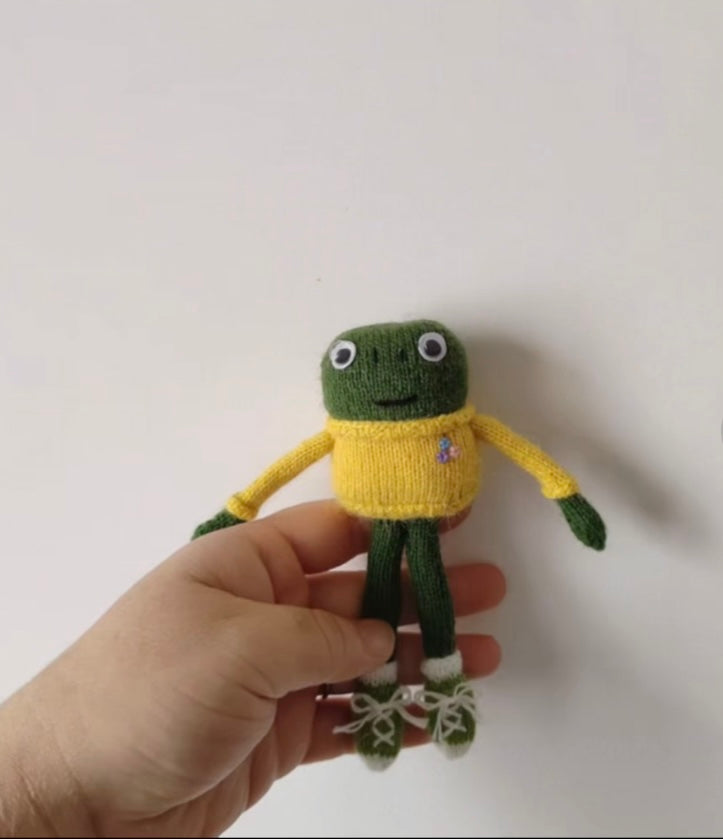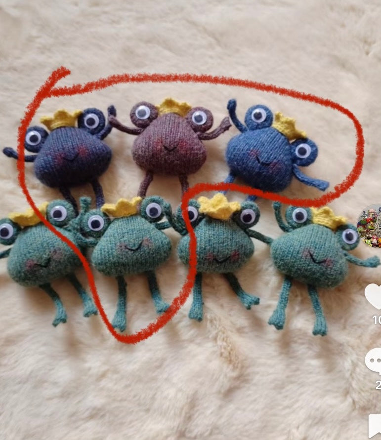 knitted Mr frog+knitted frog*6+frog girl with purple hair*2+knitted frog with purple sweater