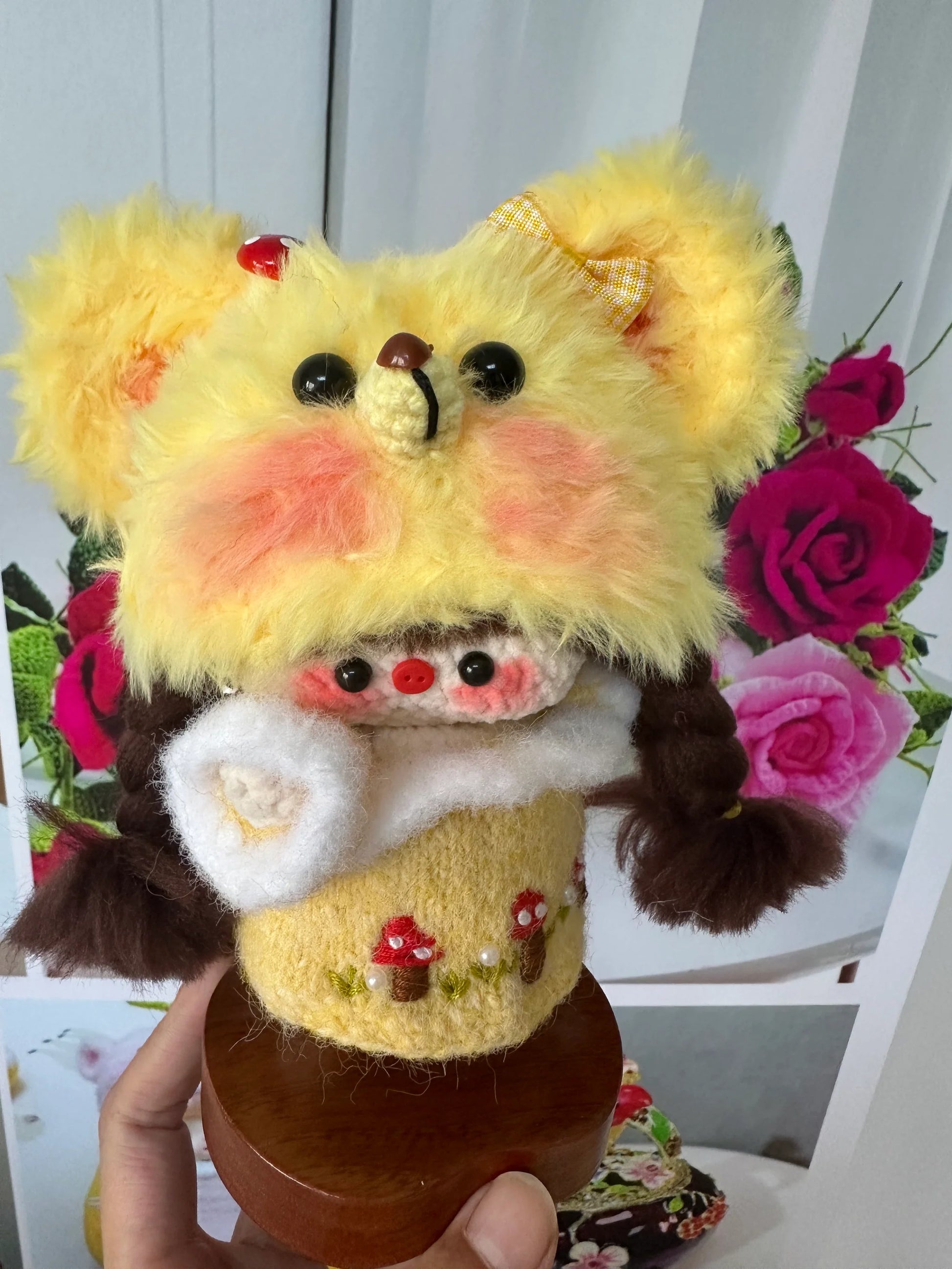 Crochet Magnetic Doll/Girl with Yellow Bear Hat/ Knitted Cloth/Random Embroidery Pattern/Random Hair Color(15 cm/6 inch)