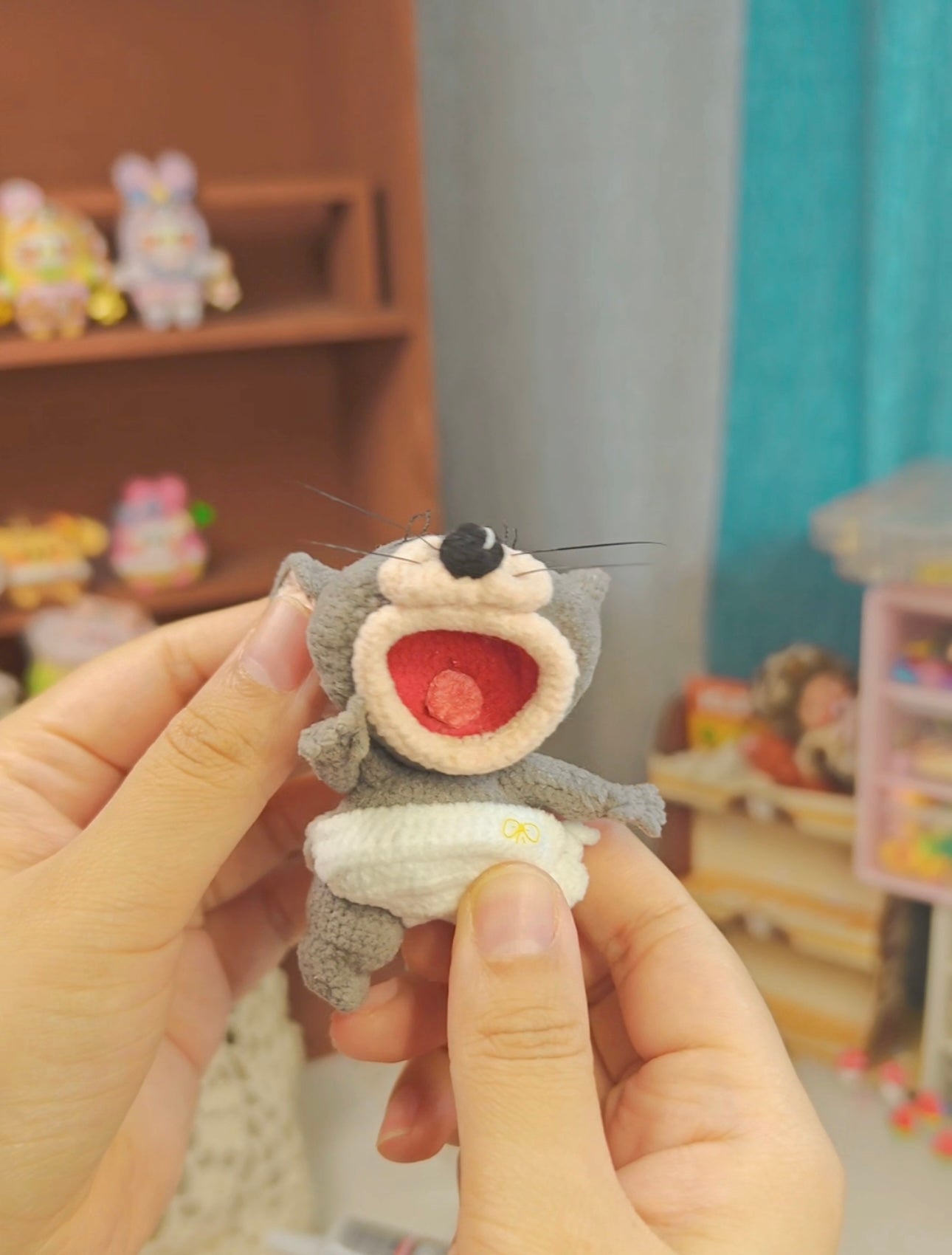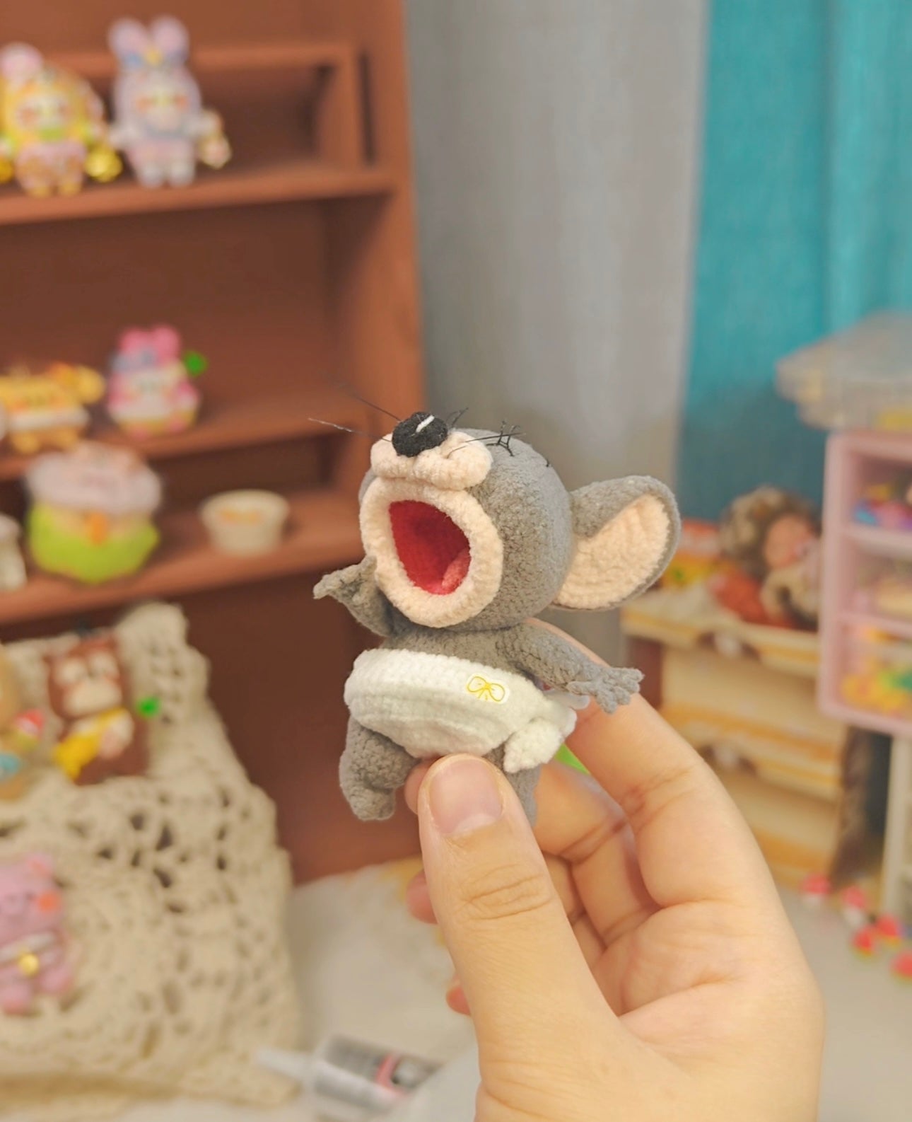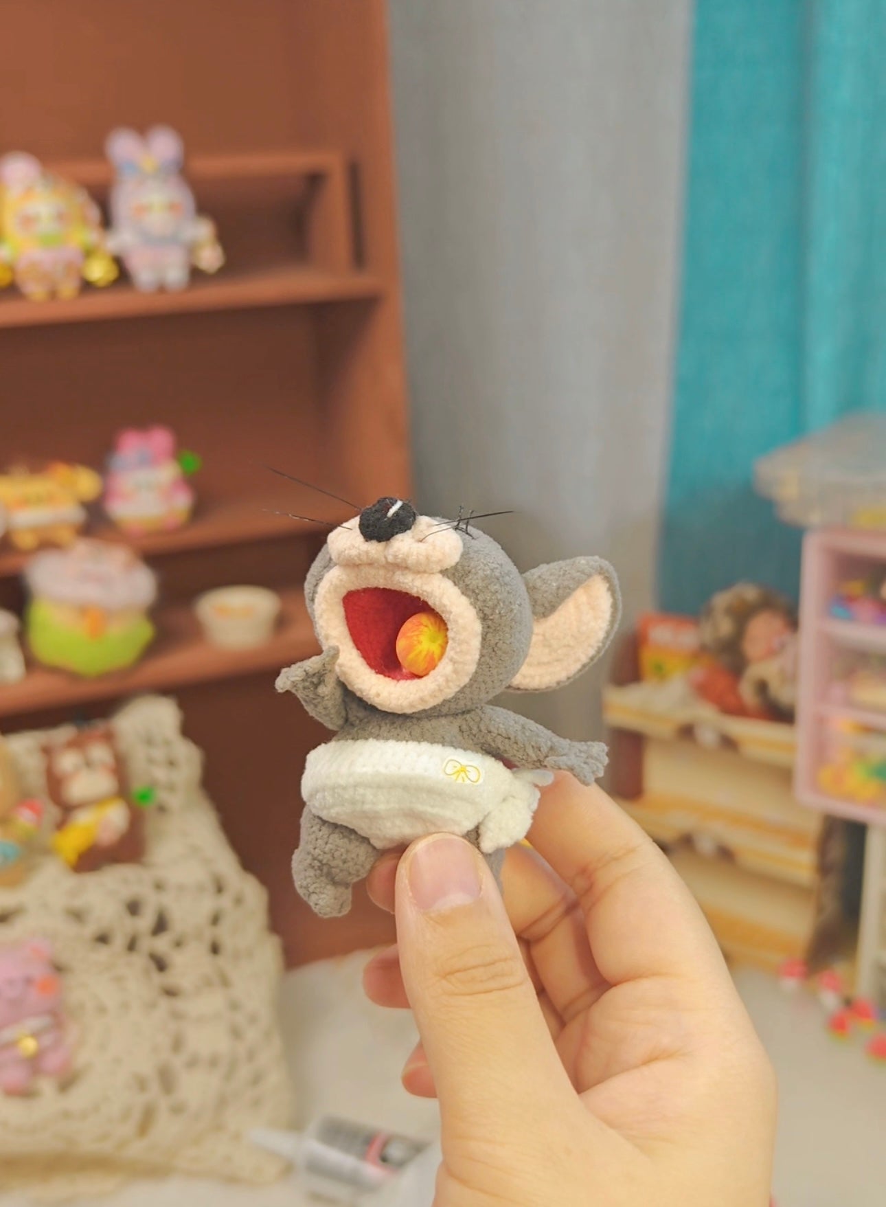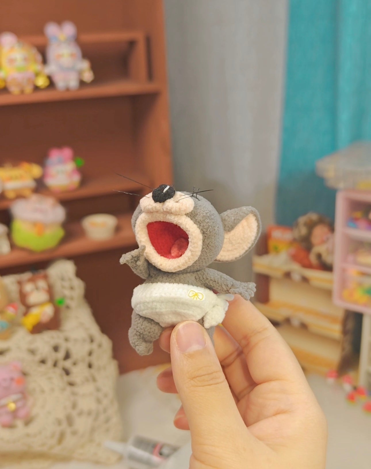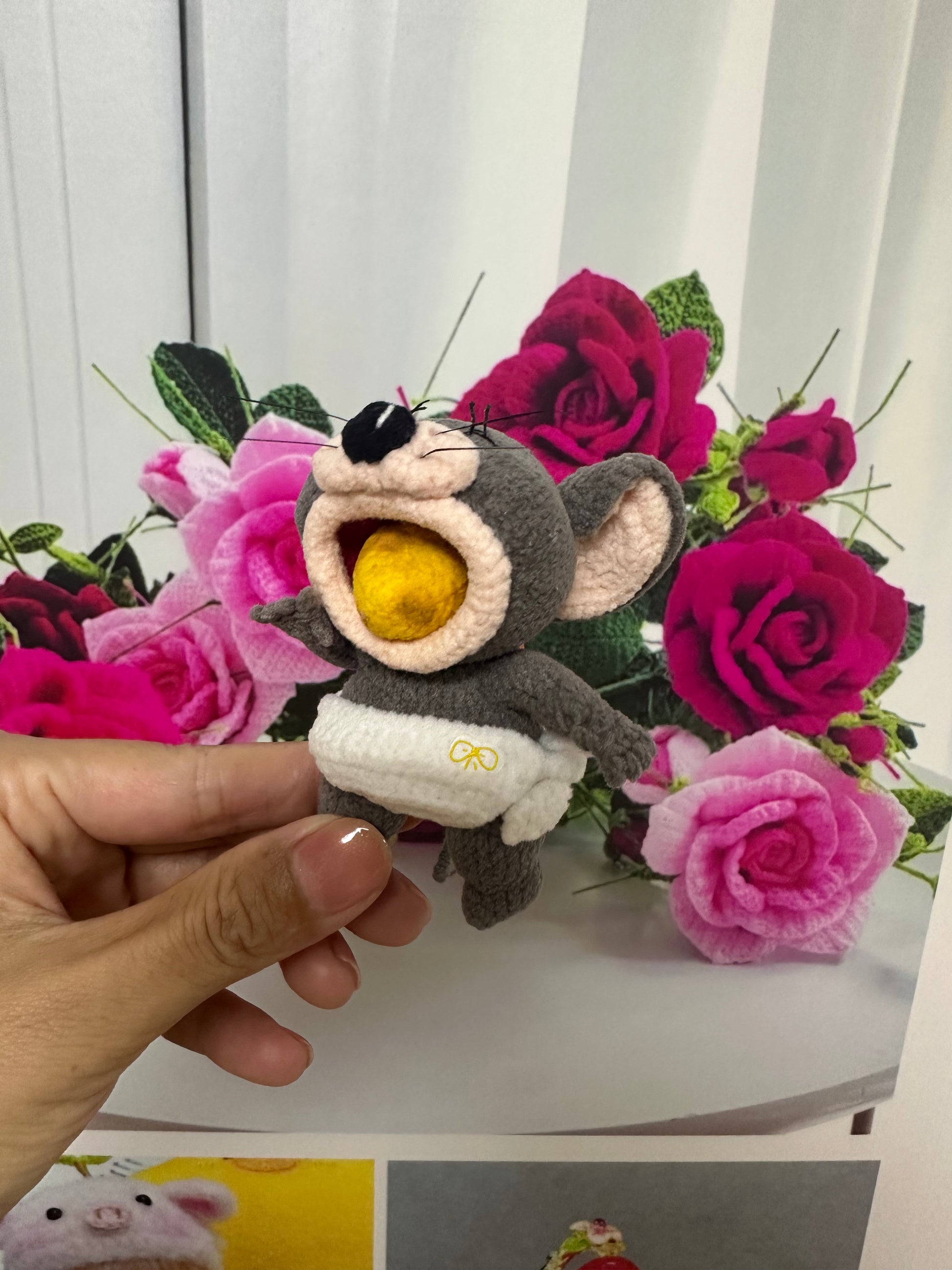 Crochet Mouse with Clay Apple+Crochet Bread/Magnetic(8 cm/3 inch)