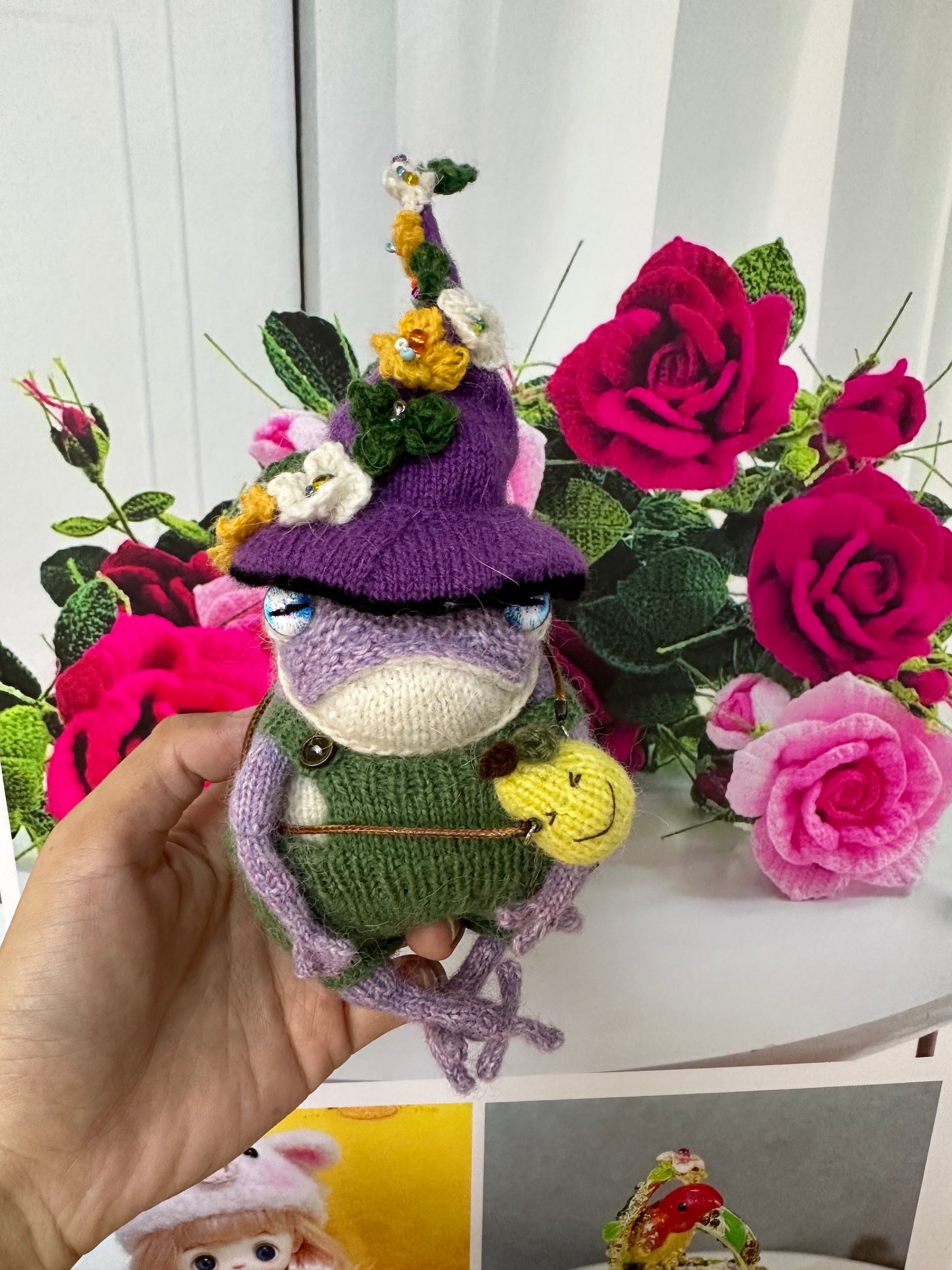 Knitted Frog with 2 Mushroom Hat+Pear bag(Wool)